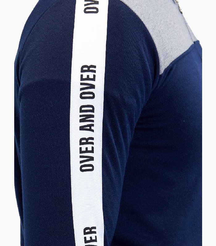 Men Hooded Navy Blue & Grey T-Shirt