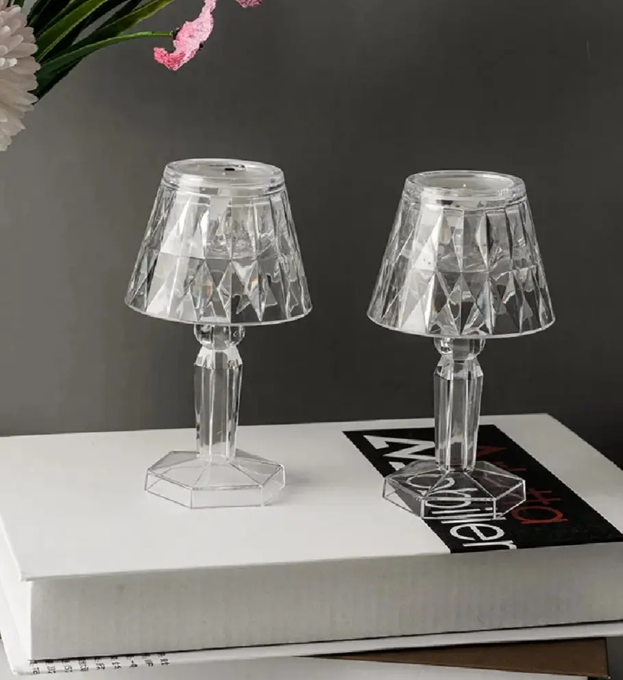 The size of each light is approx. 12 cm x 6.5 cm (height x diameter) Material: plastic, colour: transparent, light colour: warm white mini table lamps in crystal look – conjures up a delicate, non-dazzling light image in all directions Only suitable for indoor use Description Led Diamond Table Lamp Rechargeable Night Lights Crystal Projection Desk Lamps Home Acrylic Xmas Decor Lighting Fixtures Gift Spetebo LED Mini Table Lamp Warm White Crystal Look Conical / 12 cm Small Modern Decorative Table Lamp Battery Operated Decorative Light Mood Light Diamond Look Wireless